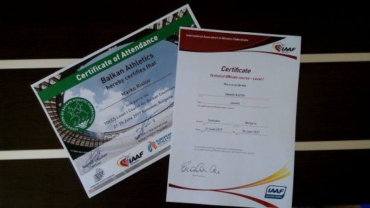 Asocijaja Balkanskih Atletskih Federacija (ABAF) je u Samokovu u Bugarskoj organizovala TOESC seminar prvog nivoa. Seminar se odnosi na obuku za NTO - a, odnosno Nacionalna Tehnička Zvanična Lica, i zahteva dobro poznavanje i primenu atletskih pravila.