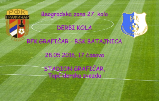 Fudbaleri Grafičara igraju poslednji meč na domaćem terenu u sezoni - i to kakav. Na stadion na Topčiderskoj zvezdi stiže BSK iz Batajnice koji se nalazi na drugom mestu tabele Beogradske zone, samo dva kola pre kraja i zaostaje za Grafosima četiri boda. To znači da će u slučaju pobede ''ljubičasti'' obezbediti trofej, a čak i u slučaju remija gotovo je izvesno da će Grafičar postati novi šampion jer će trećeplasiranoj Prvoj Iskri ostati samo teorija da se domogne prvog mesta.